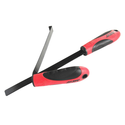 Прямое приспособление состоит из двух рабочих частей (пластикового и металлического ножа). Предназначено для отделения стекла от герметика (образования зазора).