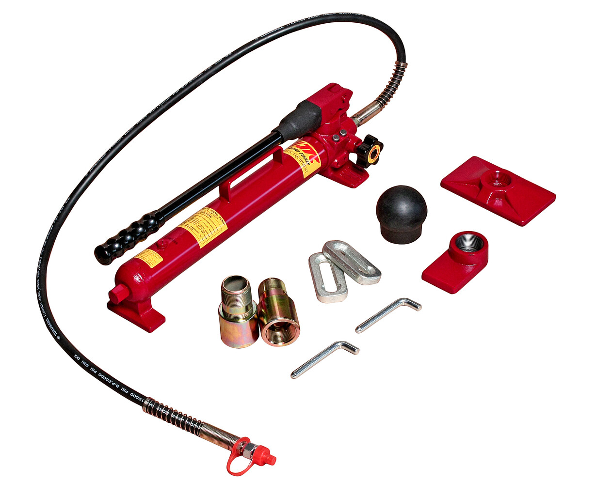 Набор гидравлического инструмента представляет собой компактный и удобный в эксплуатации комплект из гидравлического насоса (1) и гидравлического цилиндра (3), с помощью которых создается рабочее усилие; удлинителей для упрощения работы (5-8); специальных фигурных соединяющих насадок (11-16), для надежного упора в детали кузова.