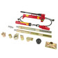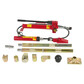 Набор гидравлического инструмента представляет собой компактный и удобный в эксплуатации комплект из гидравлического насоса (1) и гидравлического цилиндра (3), с помощью которых создается рабочее усилие; удлинителей для упрощения работы (5-8); специальных фигурных соединяющих насадок (11-16), для надежного упора в детали кузова.