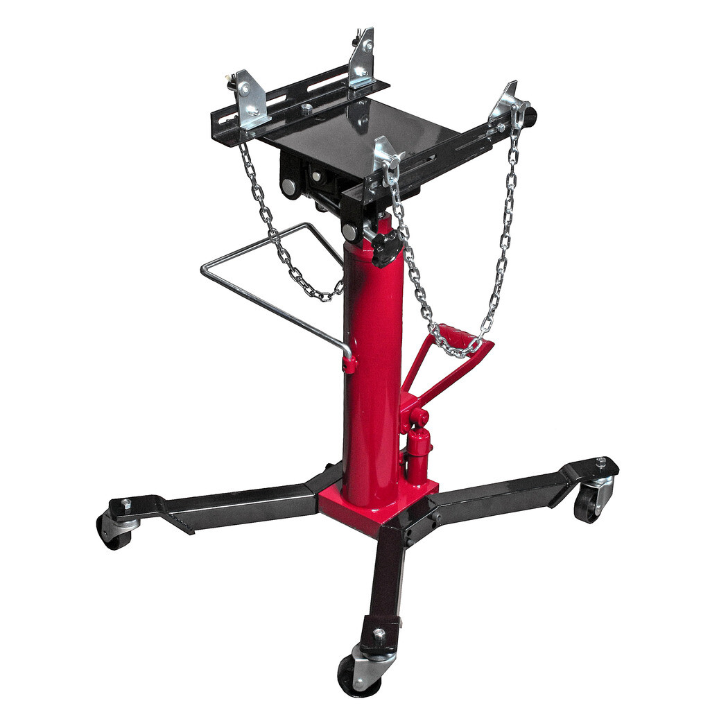 Подъем осуществляется при помощи гидравлического насоса, который приводится в действие педалью, что позволяет оператору полностью контролировать процесс монтажа/демонтажа элементов трансмиссии.