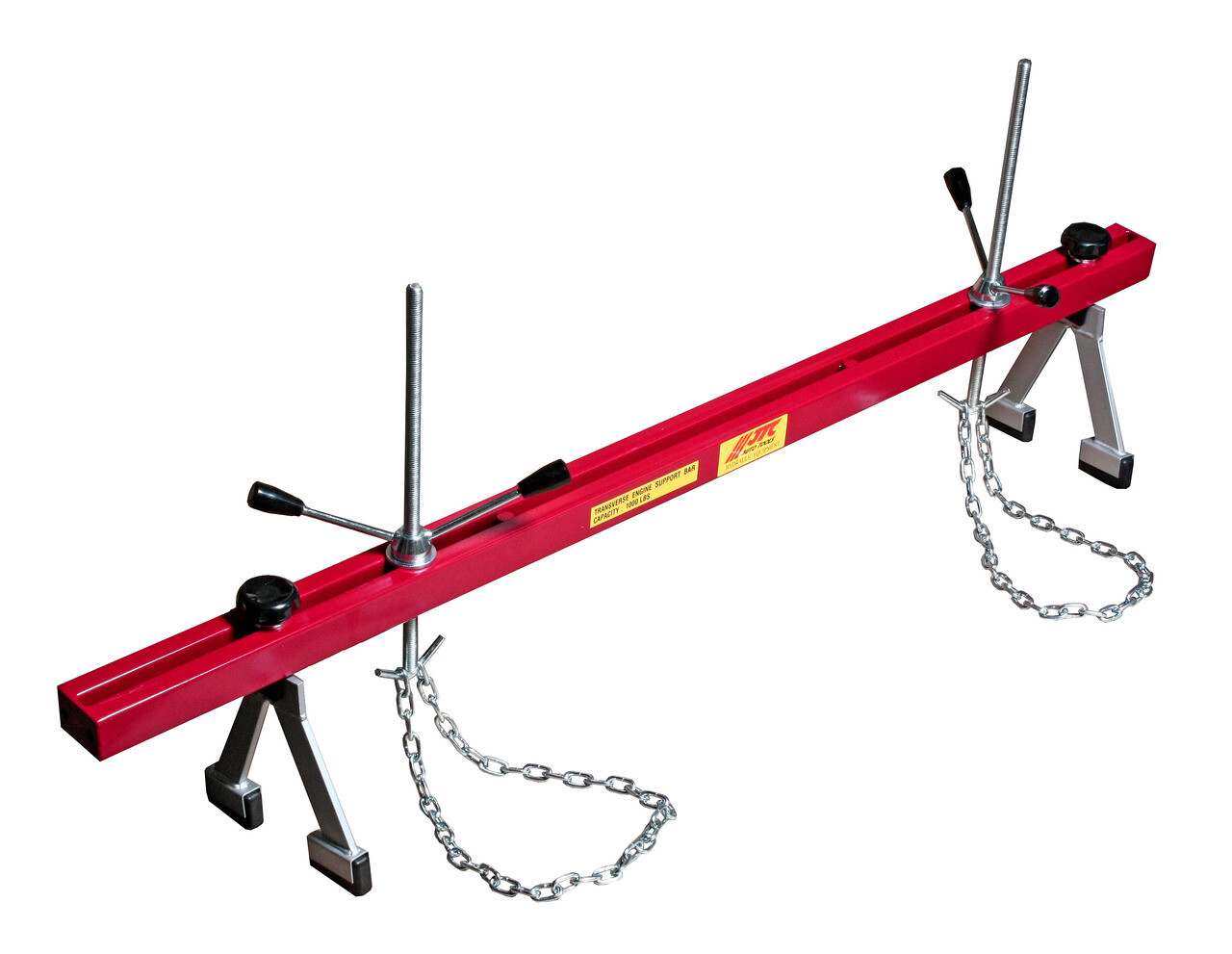 Регулируемые по высоте и ширине опоры надежно удерживают траверсу над моторным отсеком автомобиля.