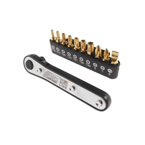 Набор бит 1/4" SL6, PH1-2, TORX, Т10Н-Т40Н с ключом трещоткой 11 предметов JTC