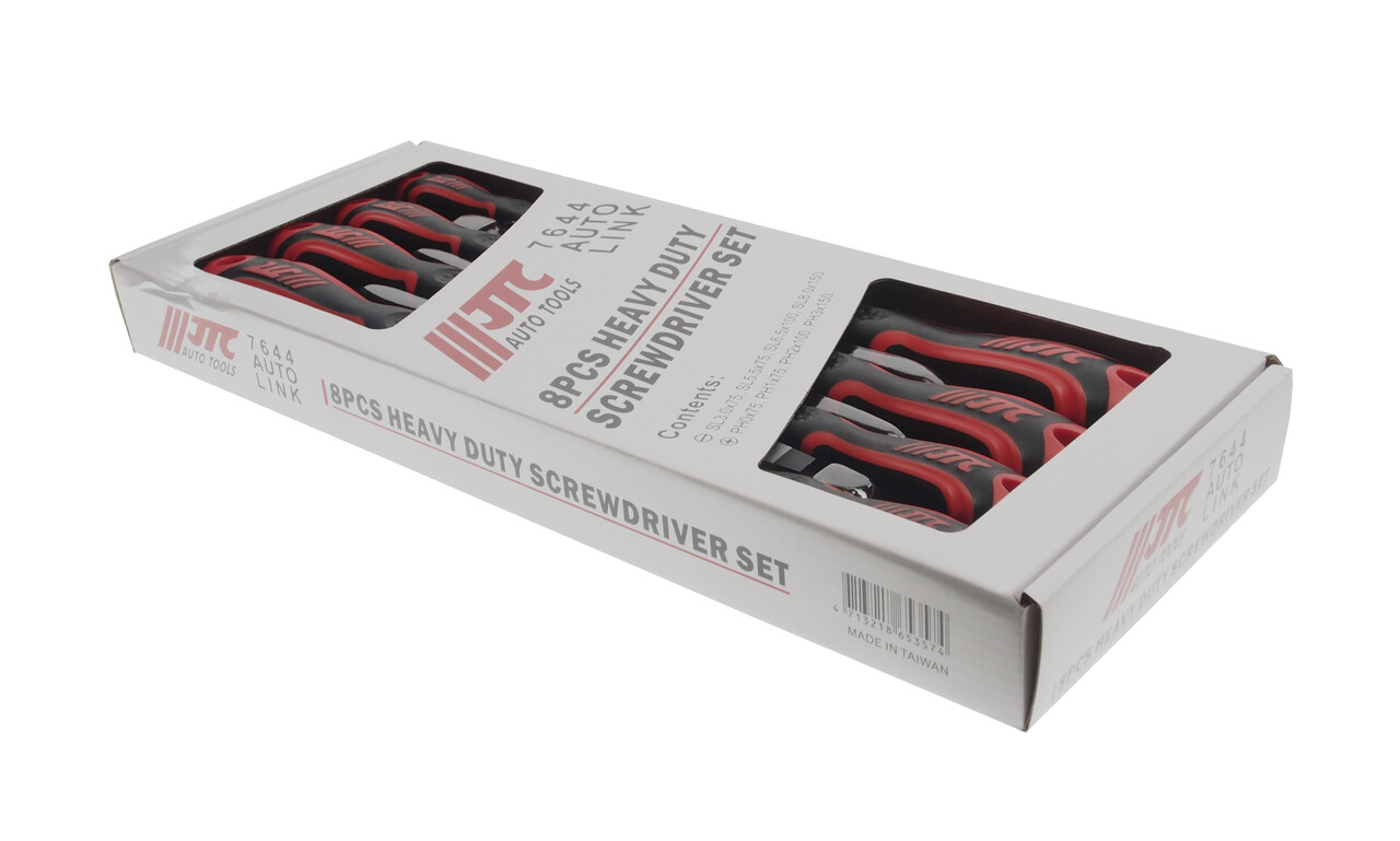 Набор отверток усиленных SL3.0,5.5x75 SL6.5x100 SL8.0x150 PH0,1x75 PH2x100 PH3x150 8 предметов JTC