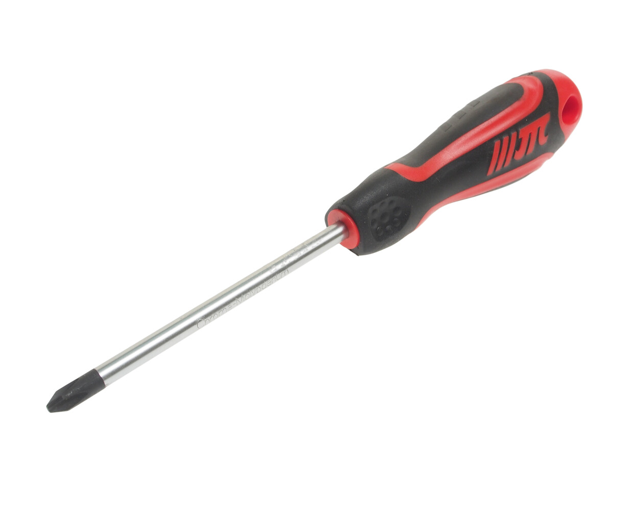 Стержень отвертки стальной. Покрыт сатин-хромом, жало оксидировано.