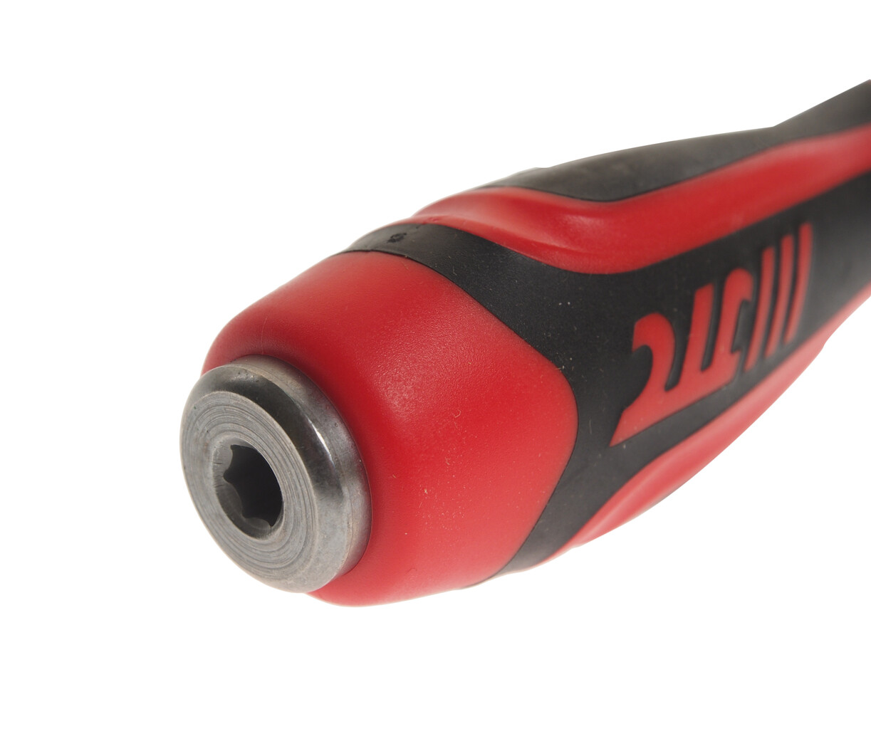 Стержень отвертки стальной. Покрыт сатин-хромом, жало оксидировано.