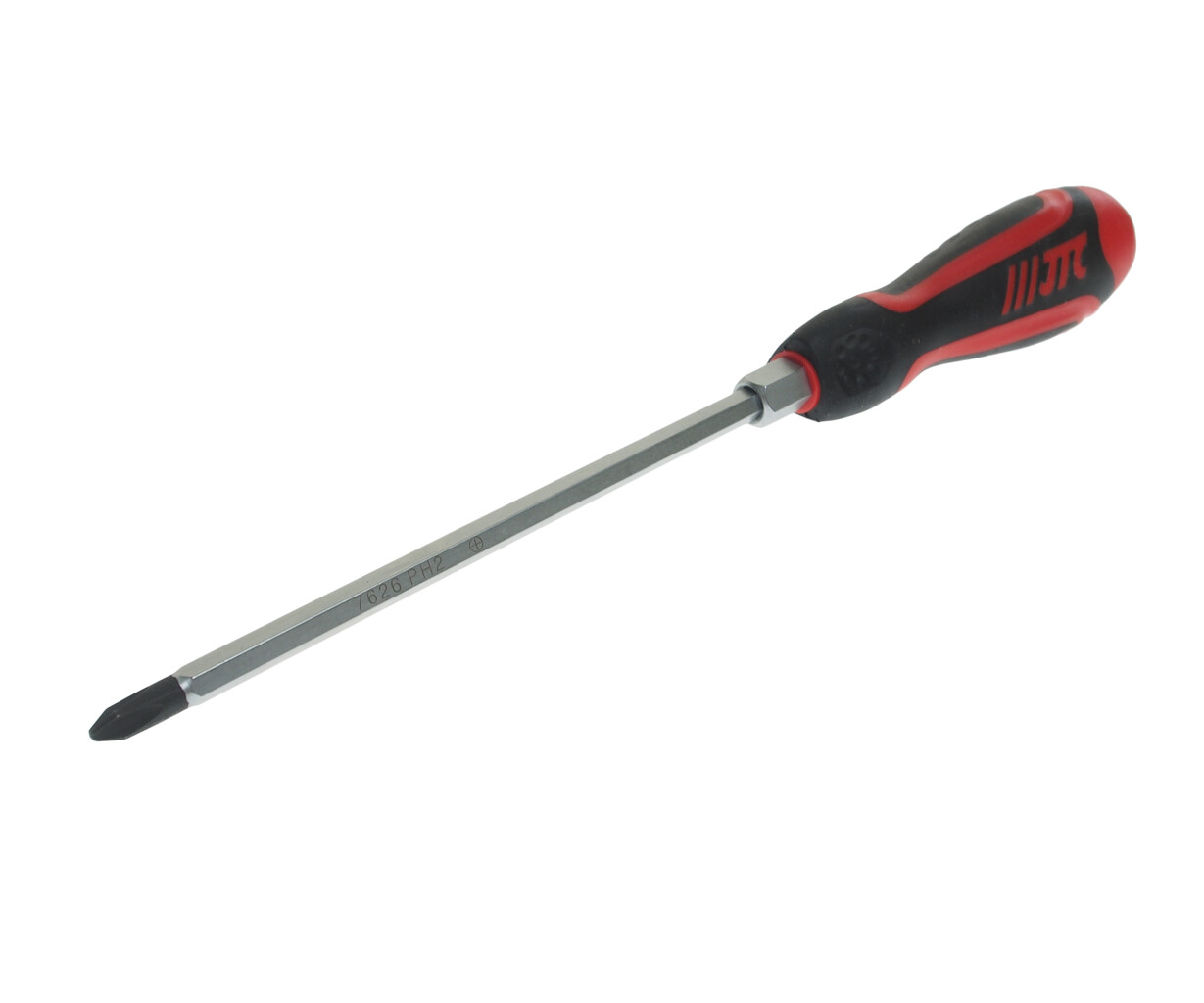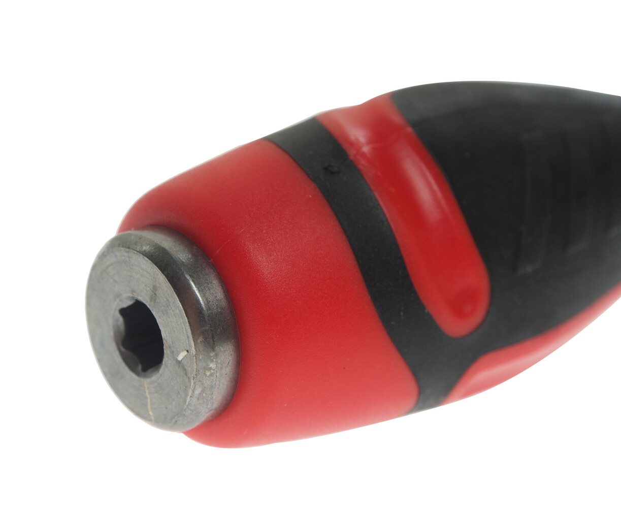 Стержень отвертки стальной, сквозной, шестигранный. Покрыт сатин-хромом, жало оксидировано.