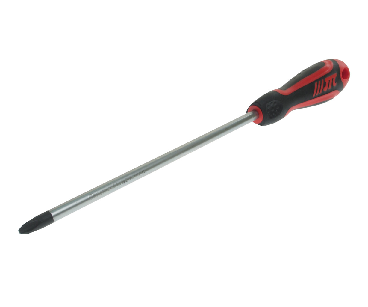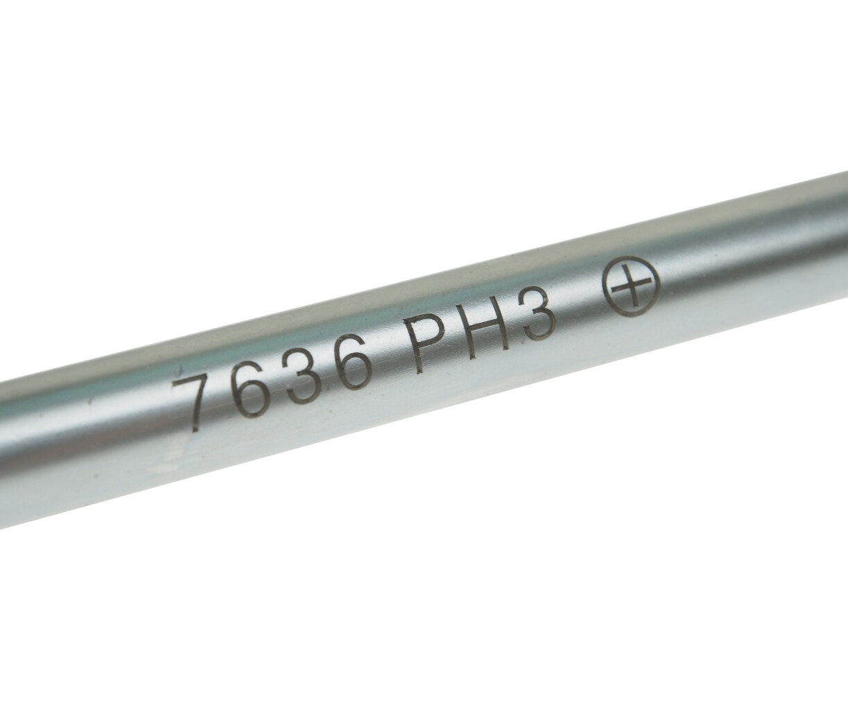 Стержень отвертки стальной. Покрыт сатин-хромом, жало оксидировано.