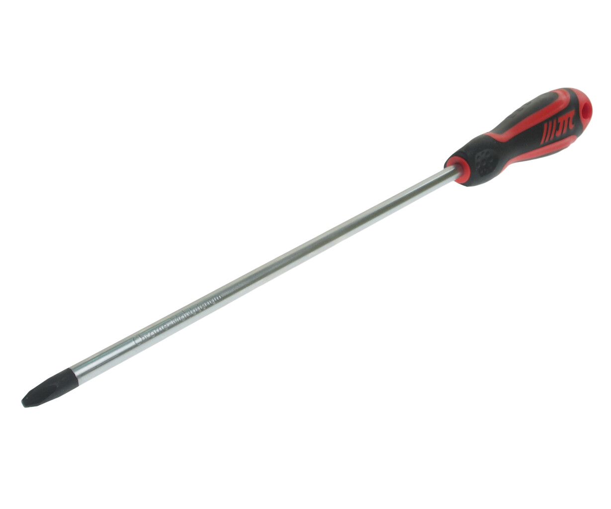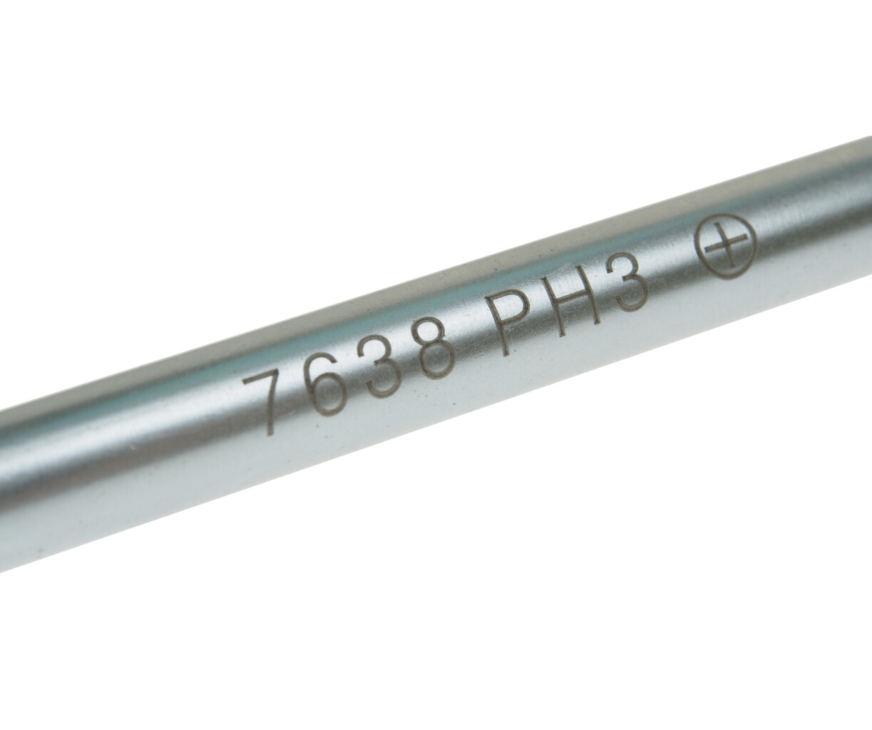 Стержень отвертки стальной. Покрыт сатин-хромом, жало оксидировано.