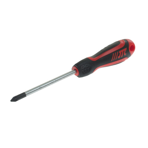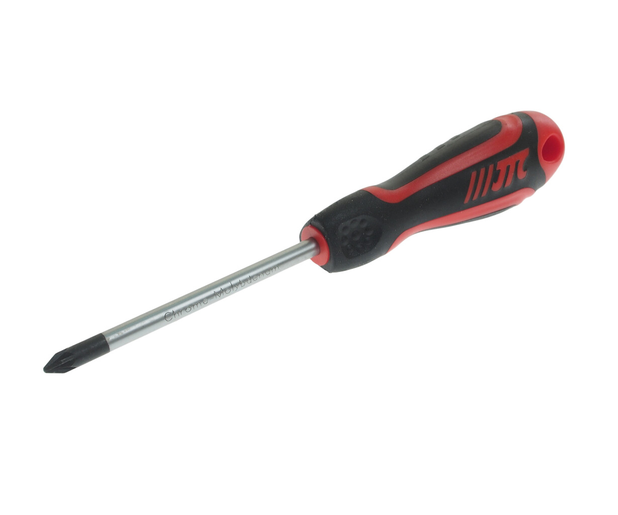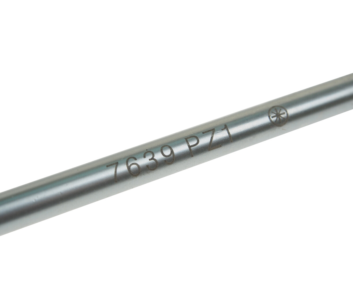 Стержень отвертки стальной. Покрыт сатин-хромом, жало- оксидировано.