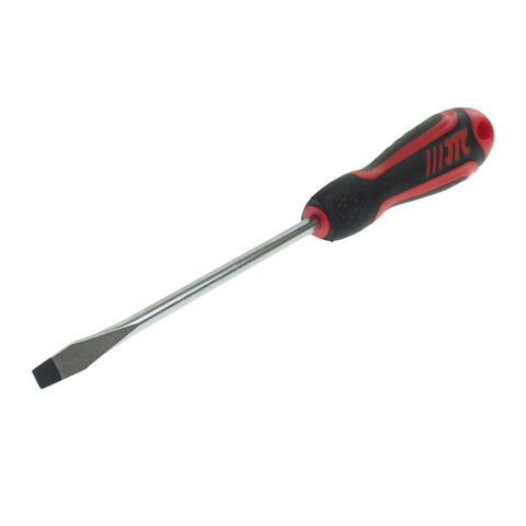 Стержень отвертки стальной. Покрыт сатин-хромом, жало оксидировано.