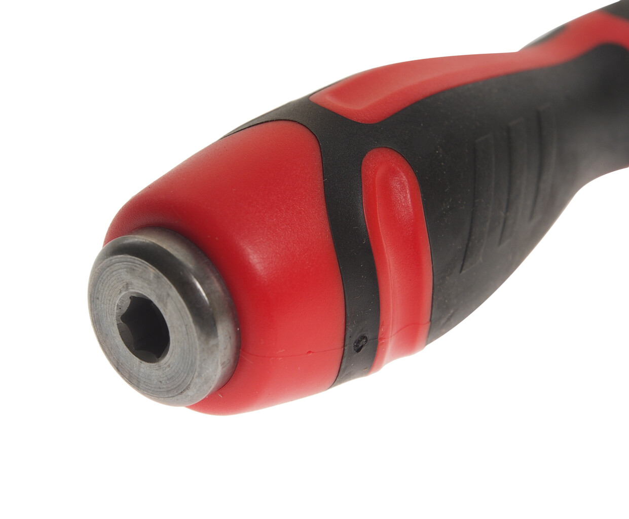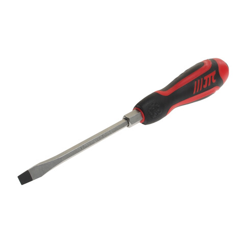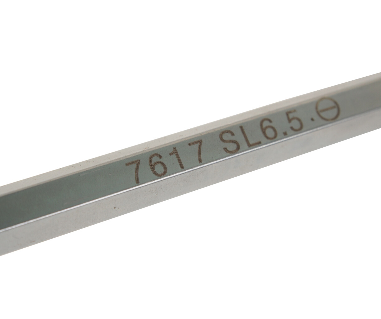 Стержень отвертки стальной, сквозной, шестигранный. Покрыт сатин-хромом, жало - оксидированно.