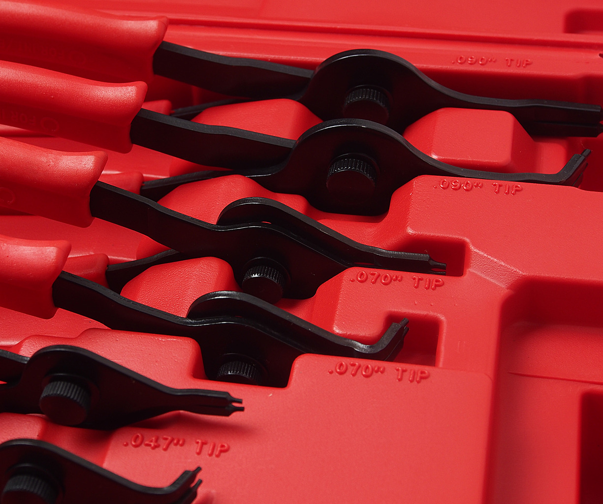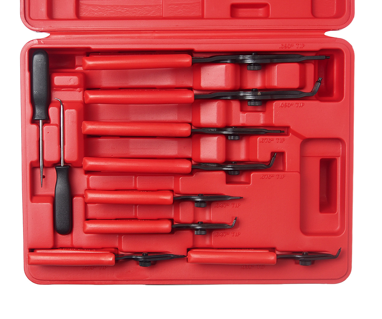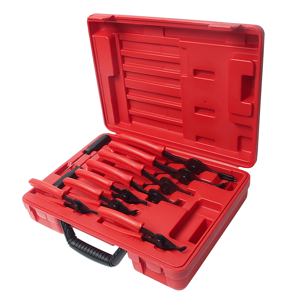 • Тип стопорного кольца: внешнее/внутреннее Материал: инструментальная сталь Чехлы на рукоятках: есть Количество съемников в упаковке: 8 шт