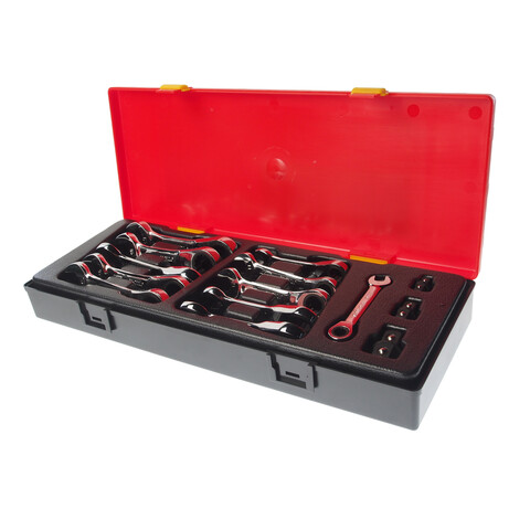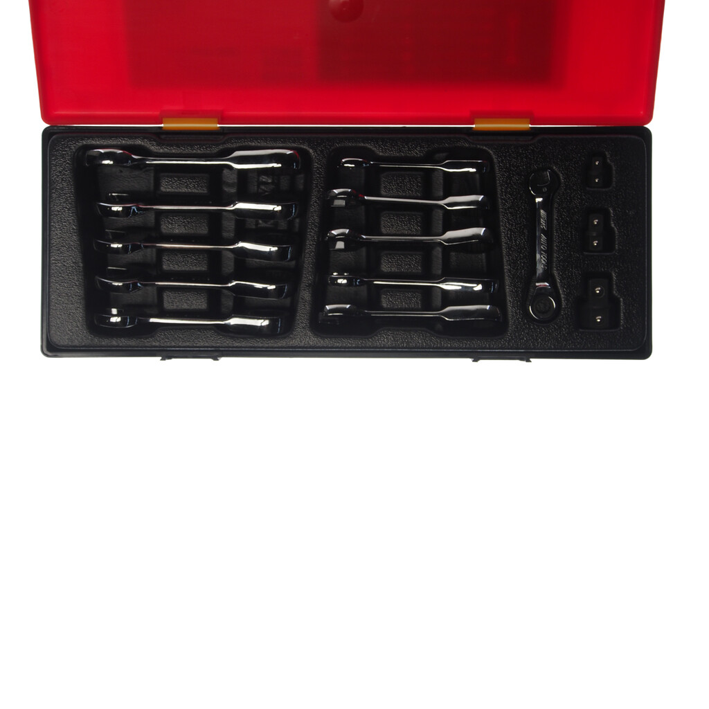 Набор ключей комбинированных 8-19мм укороченных трещоточных 14 предметов в кейсе JTC