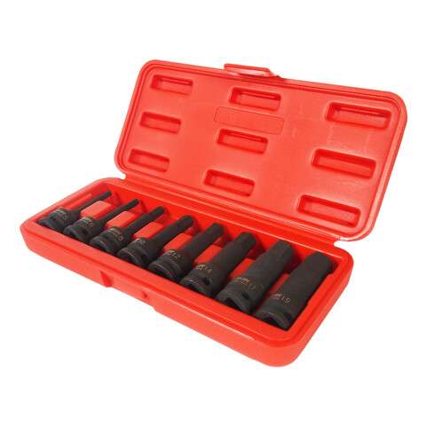 • В комплекте: 8 шт. - H-5, 6, 8, 10, 12, 14. 17, 19. Под ключ 1/2”. Материал: SNCM 8660. Длина: 78 мм. Упаковка: прочный пластиковый кейс. Габаритные размеры: 260/115/50 мм. (Д/Ш/В) Вес: 1240 гр.