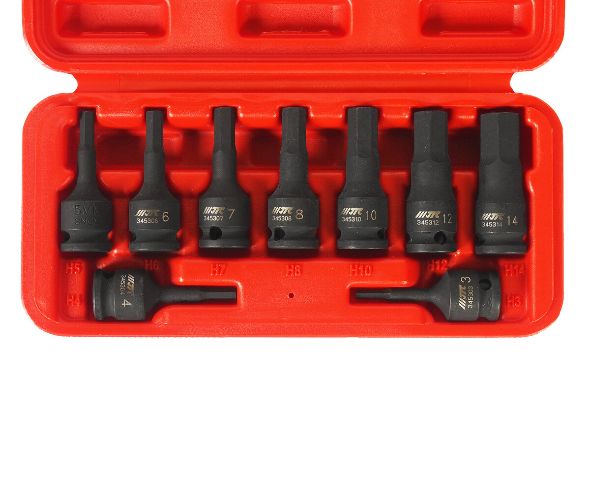 Набор бит-головок 3/8" HEX H3-14ммх52мм ударных 9 предметов в кейсе JTC