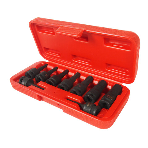 • В комплекте: 9 шт. - H-3, 4, 5, 6, 7, 8, 10, 12, 14. Под ключ 3/8”. Материал: SNCM 8660. Длина: 52 мм. Упаковка: прочный пластиковый кейс. Габаритные размеры: 195/85/45 мм. (Д/Ш/В) Вес: 550 гр.