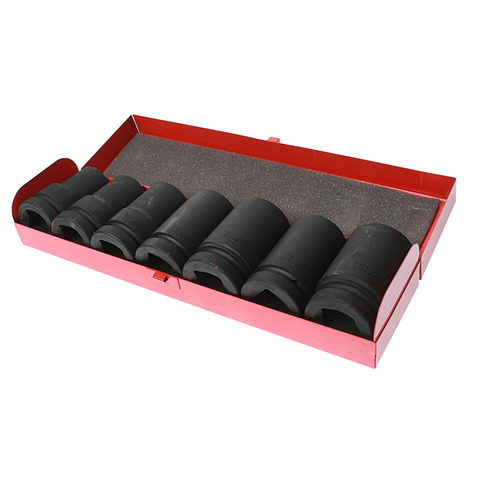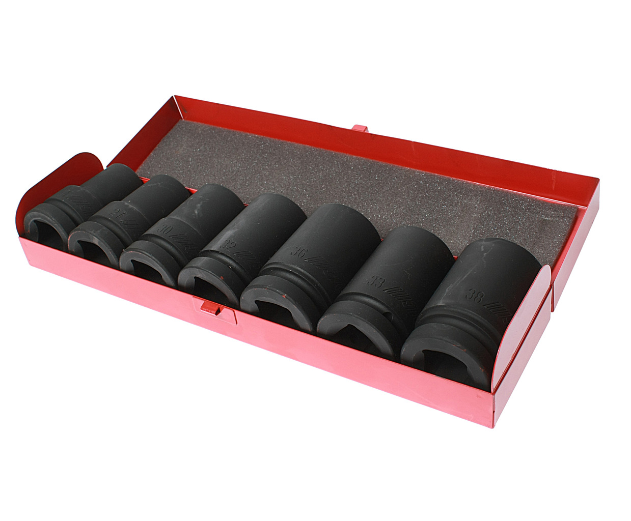 Набор головок торцевых 1" 6-ти гранных 24-38мм ударных глубоких 7 предметов в кейсе JTC