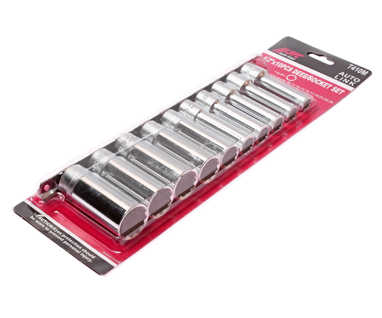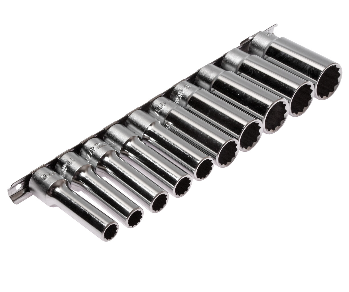 10 ед. головки 1/2": 10, 11, 12, 13, 14, 17, 19, 21, 22, 24 мм.