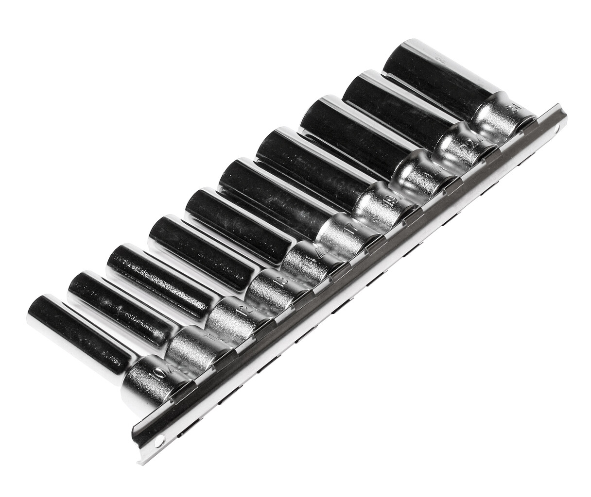 10 ед. головки 1/2": 10, 11, 12, 13, 14, 17, 19, 21, 22, 24 мм.