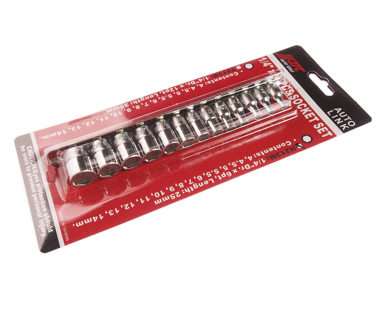 • В комплекте: 4, 4.5, 5, 5.5, 6, 7, 8, 9, 10, 11, 12, 13, 14 мм. Под ключ: 1/4”х6 граней. Длина: 25 мм. Габаритные размеры: 270/110/30 мм. (Д/Ш/В) Вес: 270 гр.