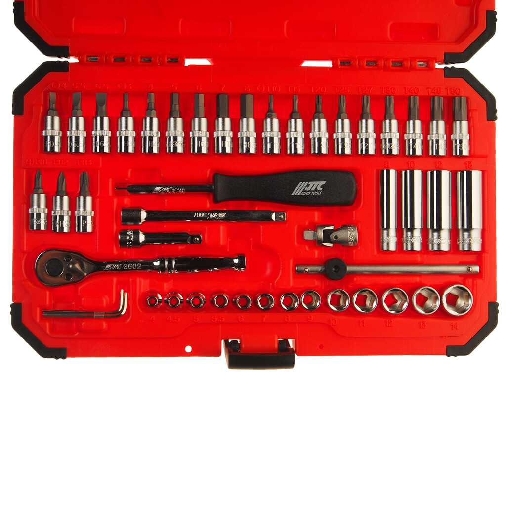 Набор головок торцевых и насадок 1/4" 6-ти гранных 4-14мм,Т10-Т50 47 предметов в кейсе JTC