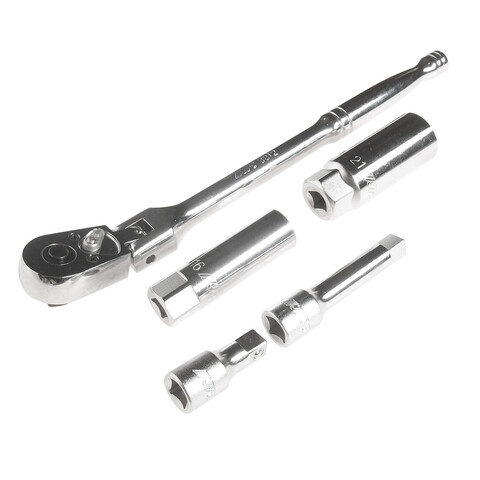• В комплекте: Трещотка с поворотной головкой 3/8” – 1 шт. Удлинитель 1-3/4” – 1 шт. Удлинитель 1-3” – 1 шт. Торцевая головка 16 мм. с пружинным фиксатором – 1 шт. Торцевая головка 21 мм. с пружинным фиксатором – 1 шт. Габаритные размеры: 350/120/30 мм. (Д/Ш/В) Вес: 890 гр.
