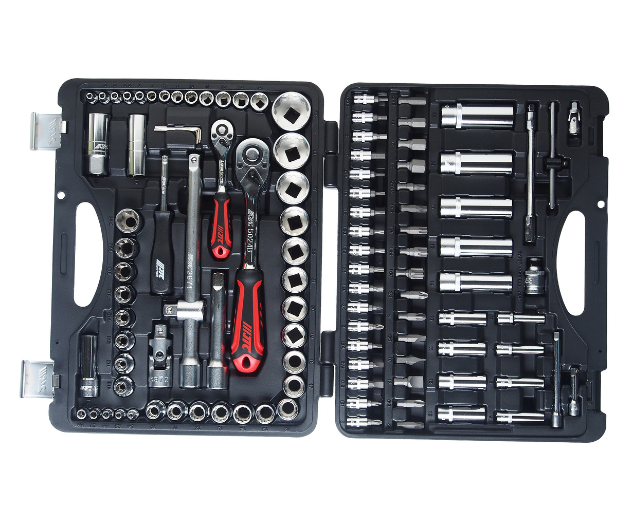 Набор головок торцевых,бит и бит-головок 1/4",1/2" 12-гранных 110 предметов в кейсе JTC