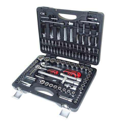 • Комплектация 1/4": Головка торцевая, 12 граней 1/4" (4, 5, 5.5, 6, 7, 8, 9, 10, 11, 12, 13, 14 мм); Головка торцевая длинная, 12 граней 1/4" ( 6, 7, 8, 9, 10, 11, 12, 13 мм); Головка торцевая 1/4" (Е4, Е5,Е 6, Е7, Е8 мм); Головка с насадкой HEX 1/4" (3, 4, 5, 6 мм); Головка с насадкой TORX 1/4" (T8, T10, T15, T20, T25, T27, T30); Головка с шлицевой насадкой 1/4" (4, 5.5, 6.5 мм); Головка с насадкой PH 1/4" (PH1, PH2); Насадка PZ 1/4" (PZ1, PZ2); Трещотка (силовая) 1/4", 72 зуба (резиновая ручка); Удлинитель 1/4" 50 мм; Удлинитель 1/4" 100 мм; Удлинитель гибкий 150 мм; Вороток 1/4" с плавающей головкой 115 мм; Кардан 1/4"; Вороток-отвертка 1/4" 150 мм; Короткие шестигранники (1.5, 2, 2.5). Комплектация 1/2": Головка торцевая, 12 граней, 1/2" (10-22, 24, 27, 30, 32 мм); Головка торцевая длинная, 12 граней, 1/2" (14, 15, 17, 19, 22 мм); Головка торцевая 1/2" (Е10, Е11, Е12, Е14, Е16, Е18, Е20, Е24); Насадка 5/16" HEX (7, 8, 10, 12, 14 мм); Насадка 5/16" TORX (T40, T45, T50, T55, T60); Насадка 5/16" PH для ударной отвертки (PH3, PH4); Насадка 5/16" PZ для ударной отвертки (PZ3, PZ4); Насадка 5/16" 30 мм. шлиц (8, 10, 12 мм); Трещотка 1/2" силовая (резиновая ручка), 72 зуба; Удлинитель 1/2" 125 мм; Удлинитель 1/2" 250 мм.