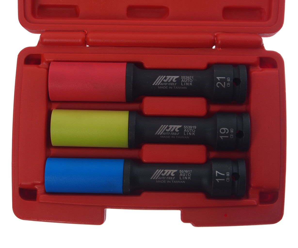 Набор головок ударных для литых дисков 17-19-21мм L=150мм 3 предмета в кейсе JTC