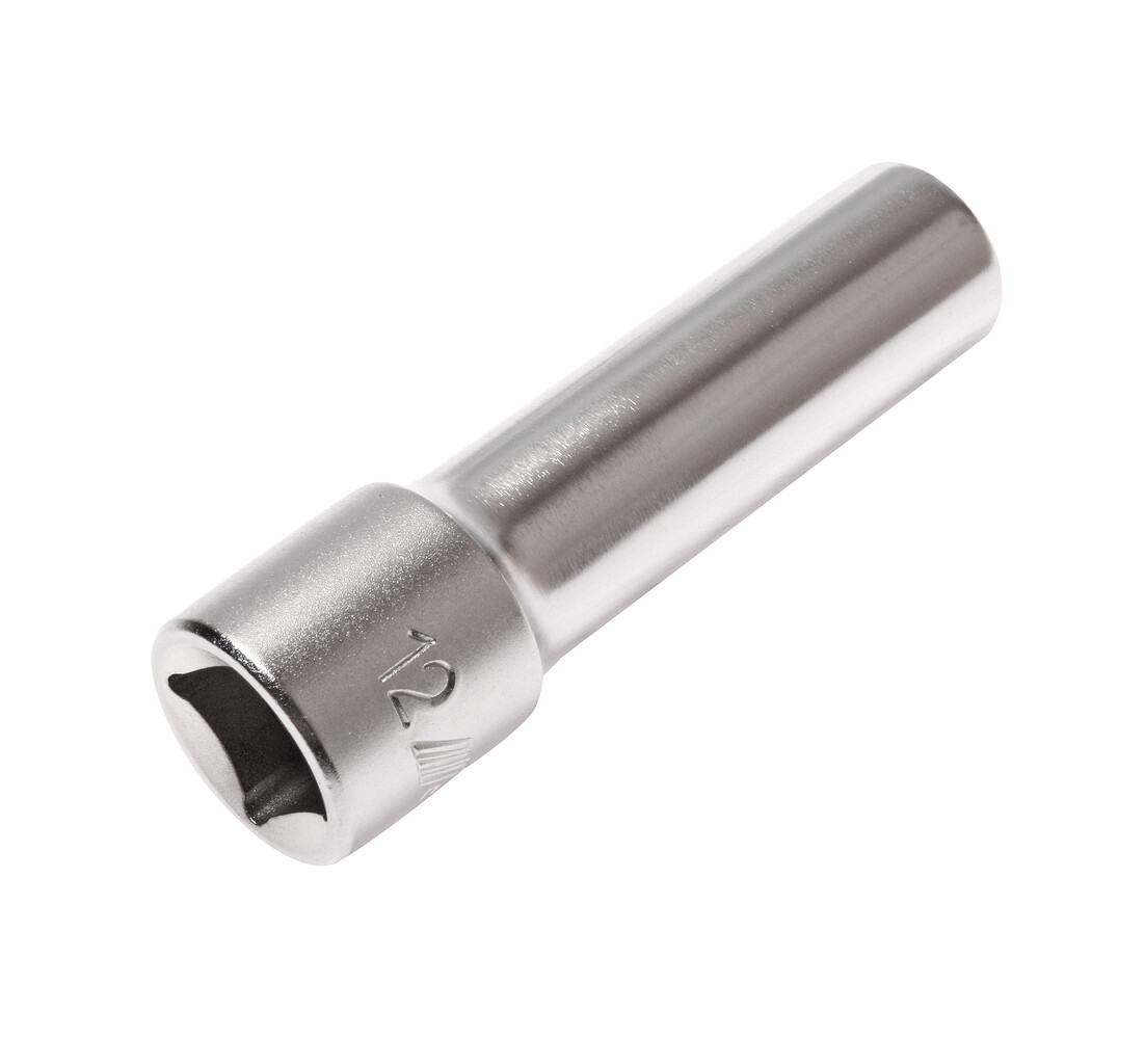 • 6 граней, метрический размер. Изготовлена из закаленной хром-ванадиевой стали. Размер: 1/2”х12 мм. Общая длина: 76 мм. Количество в оптовой упаковке: 10 шт. и 200 шт. Габаритные размеры: 76/18/18 мм. (Д/Ш/В) Вес: 94 гр.