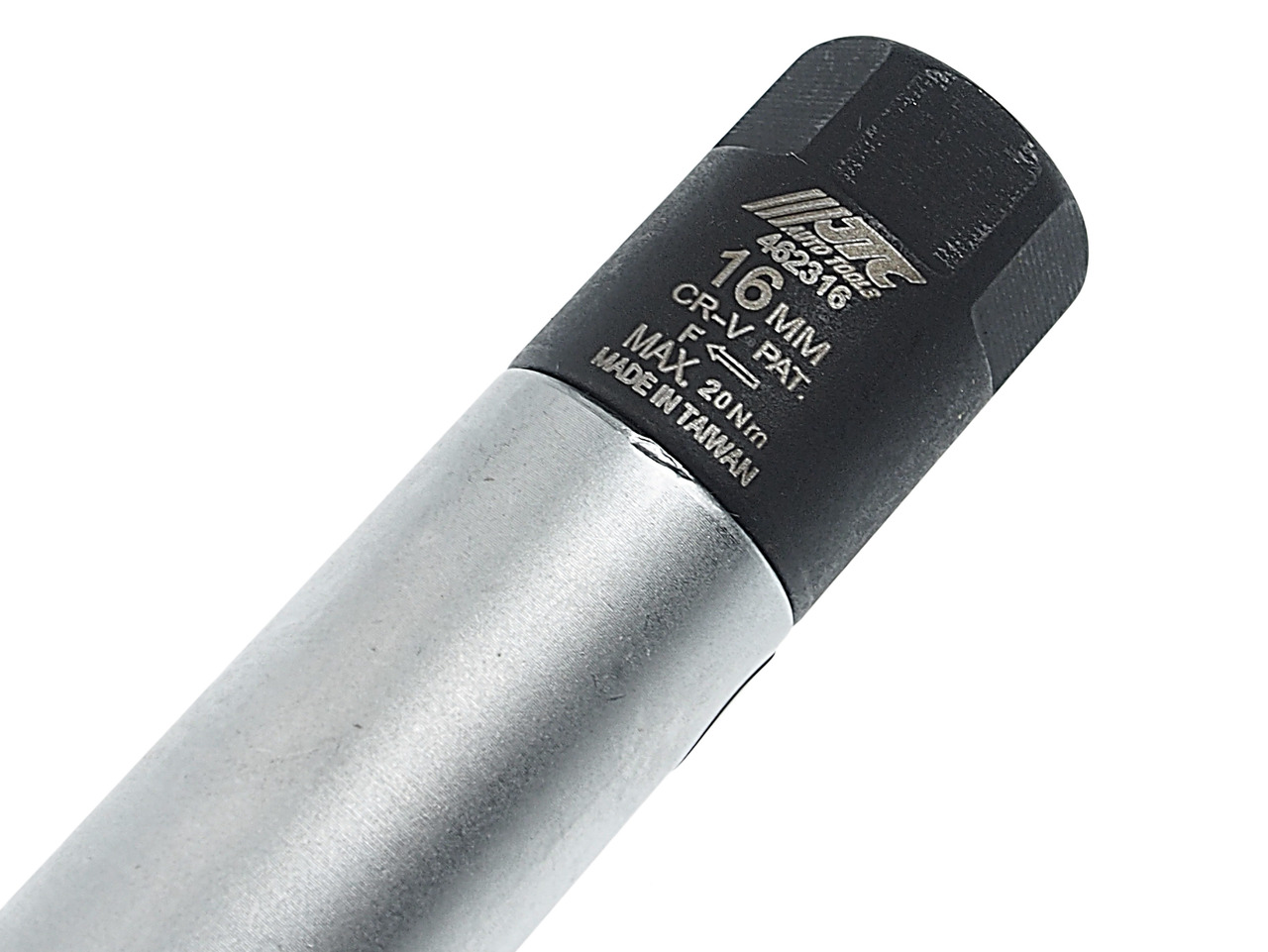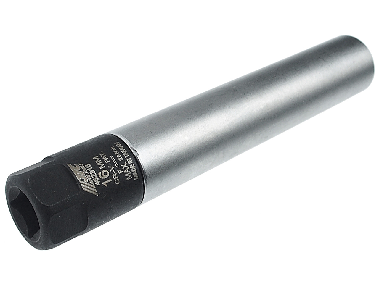 • Используется с ключом 3/8". Применяется для затяжки с точно заданным усилием во время установки свечей зажигания. 3/8" x 16 мм: диаметр 20,8/20 Н·м; длина 130 мм. Выполнена из хром-ванадиевой стали.