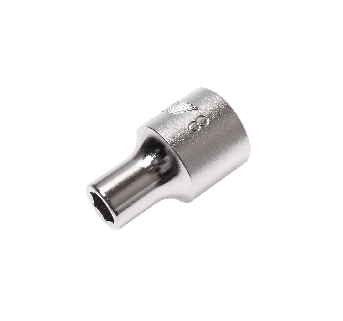 • 6 граней, метрический размер. Изготовлена из закаленной хром-ванадиевой стали. Размер: 1/2”х8 мм. Длина: 38 мм. Количество в оптовой упаковке: 10 шт. и 200 шт. Габаритные размеры: 38/13/13 мм. (Д/Ш/В) Вес: 51 гр.
