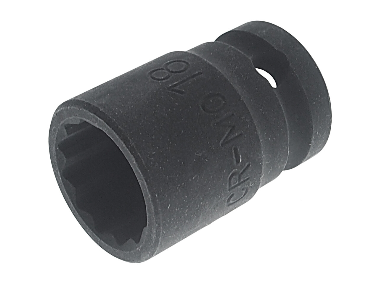 • 12 граней, метрический размер. Общая длина: 38 мм. Размер: 1/2" Dr.х18 мм. Изготовлена из высококачественной хром-молибденовой стали.