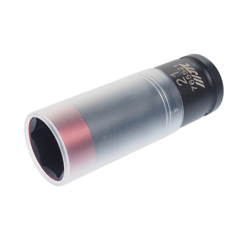 • Усиленная конструкция. Увеличенный срок службы. Прозрачная втулка из ПВХ для безопасного монтажа/демонтажа дисков. Размер: 21 мм. Диаметр патрона: 30 мм. Диаметр головки: 28 мм. Усилие: 569 H·м Цвет: красный. Длина: 85 мм.