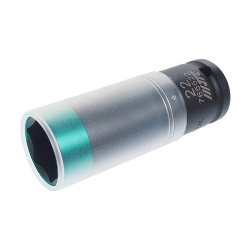 • Усиленная конструкция. Увеличенный срок службы. Прозрачная втулка из ПВХ для безопасного монтажа/демонтажа дисков. Размер: 22 мм. Диаметр патрона: 31 мм. Диаметр головки: 29 мм. Усилие: 569 H·м Цвет: зеленый. Длина: 85 мм.