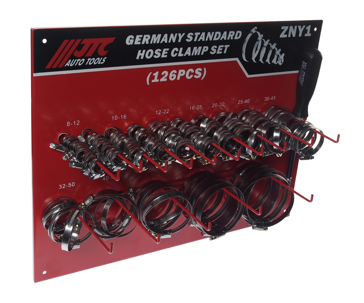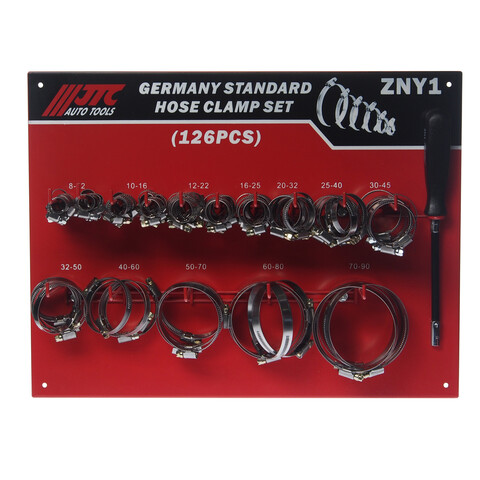 Хомут ленточный ZN12-ZN90 червячный (нержавеющая сталь) с гибким воротком 7мм (стенд) 126 предм. JTC
