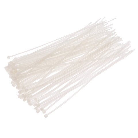 • Материал: нейлон 616. Рабочая температура: -40°С – +85°С. Длина: 200 мм. Ширина: 2.5 мм. Упаковка: 100 шт. Цвет: белый. Габаритные размеры: 260/105/15 мм. (Д/Ш/В) Вес: 58 гр.