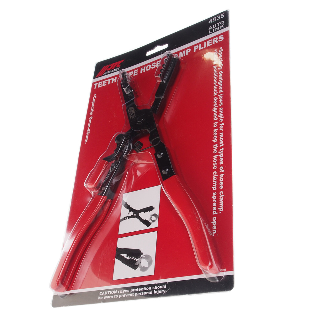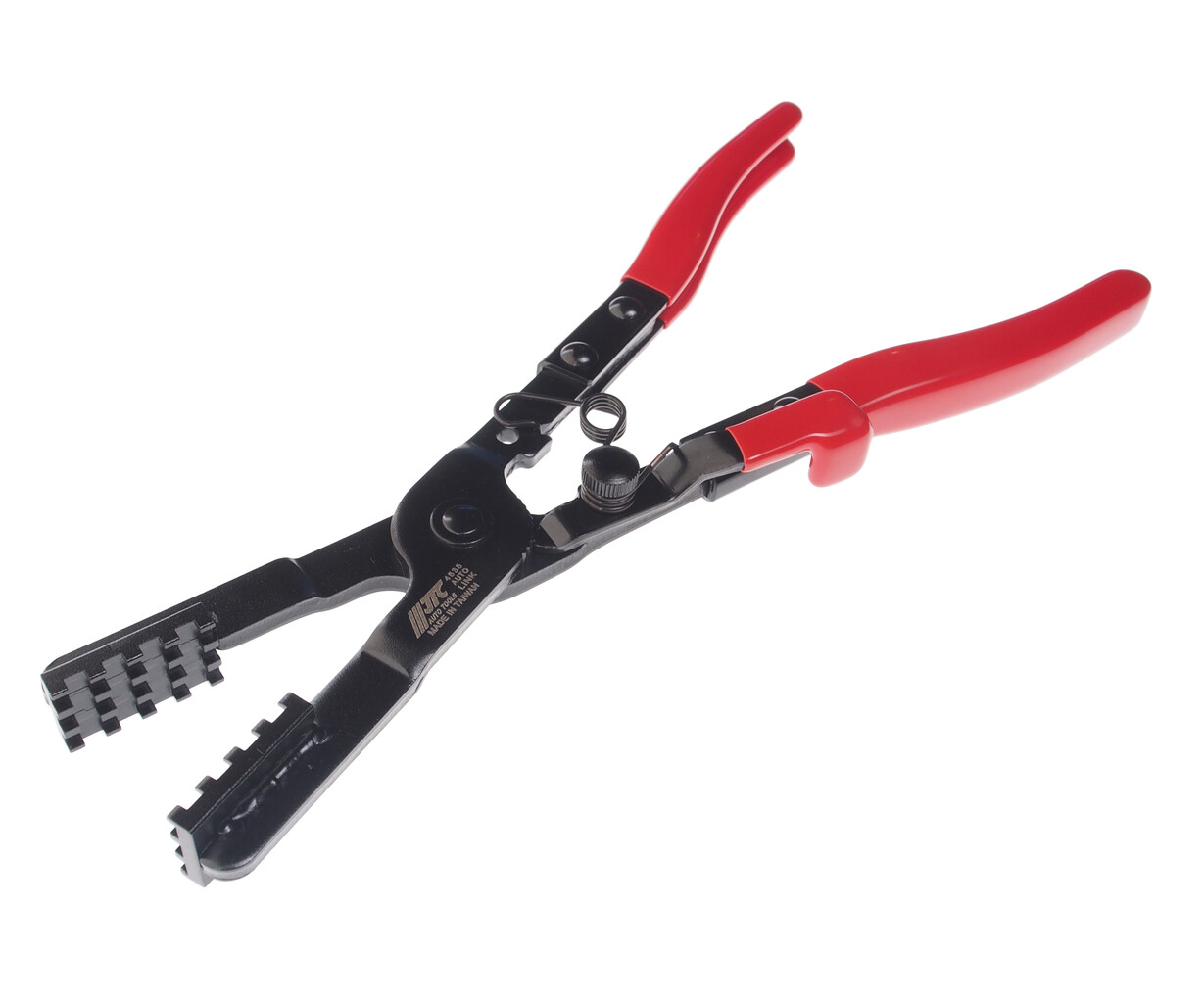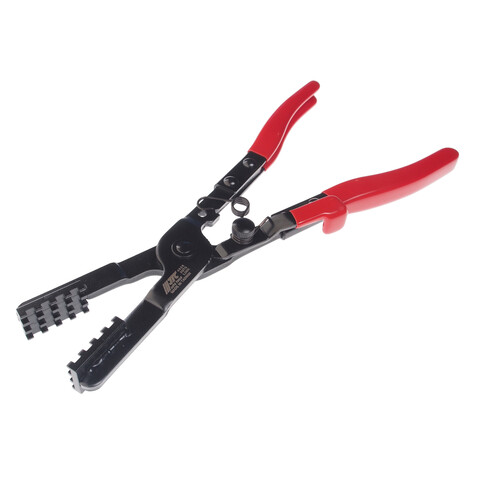 • Специальная конструкция захватов подходит для пружинных хомутов. Оснащены ручным фиксатором положения, что позволяет держать клещи открытыми. Диапазон захвата: 0-65 мм.