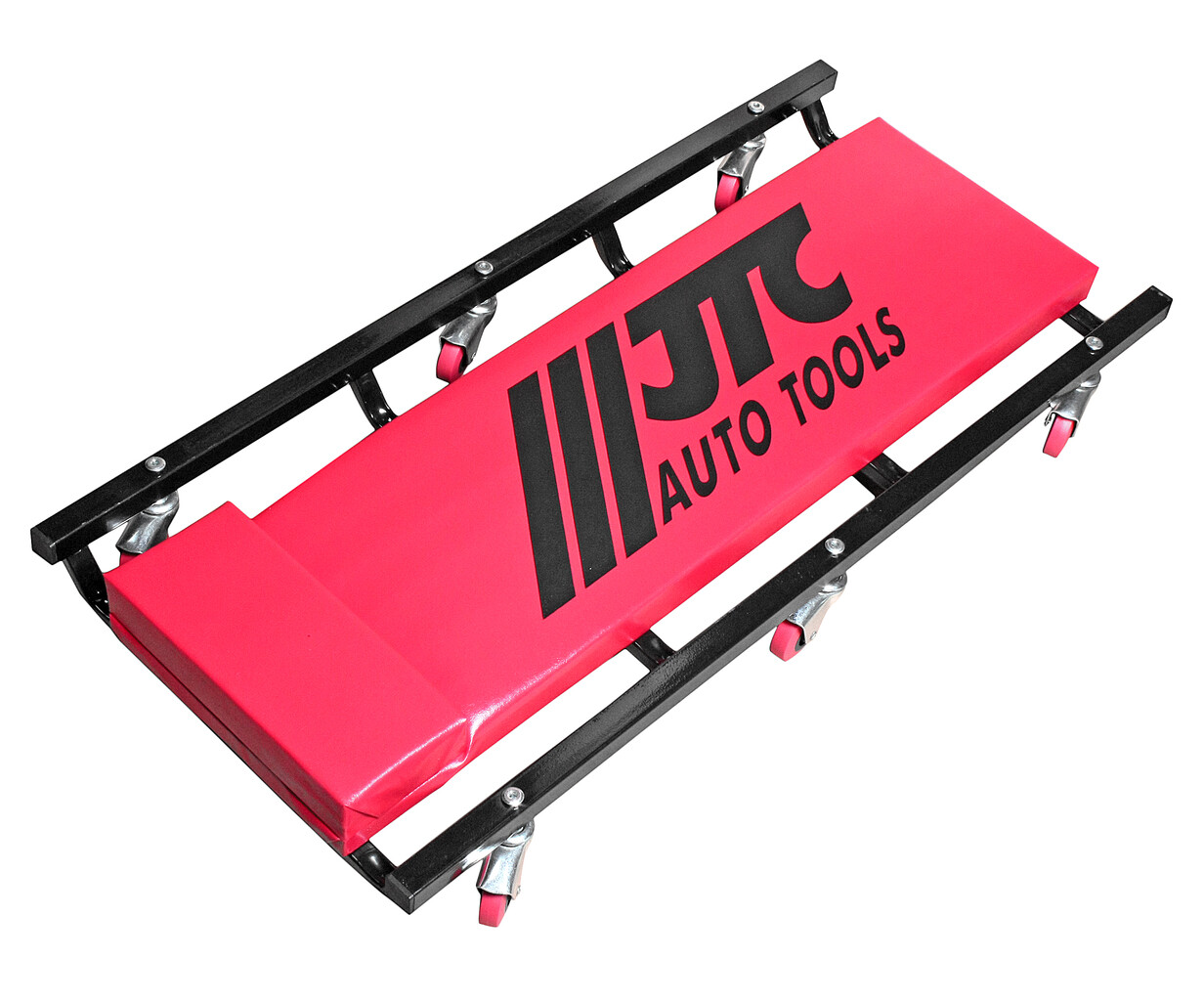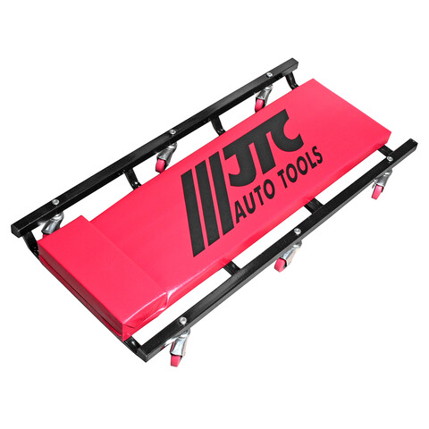 Лежак оснащен мягкой сидушкой и подголовником, что создает удобство во время выполнения работ.