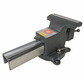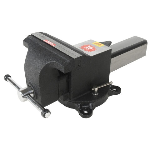 Специальная конструкция с поворотным основанием позволяет регулировать и фиксировать тиски в нужном направлении.