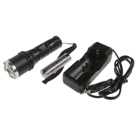 • Оснащен светодиодом мощностью 10 Вт. Яркость до 1 000 лм. Размеры: диам. 36 х 125 мм. Оборудован 30-ю светодиодами и электронным переключателем. 5 функций: 1. Яркий свет. 2. Неяркий свет. 3. Проблесковый световой сигнал. 4. Световой сигнал SOS. 5. Выключен. Оборудован аккумулятором 18650# SANYO 2600 мА (Li-Lon) - 1 шт. и зарядным устройством.