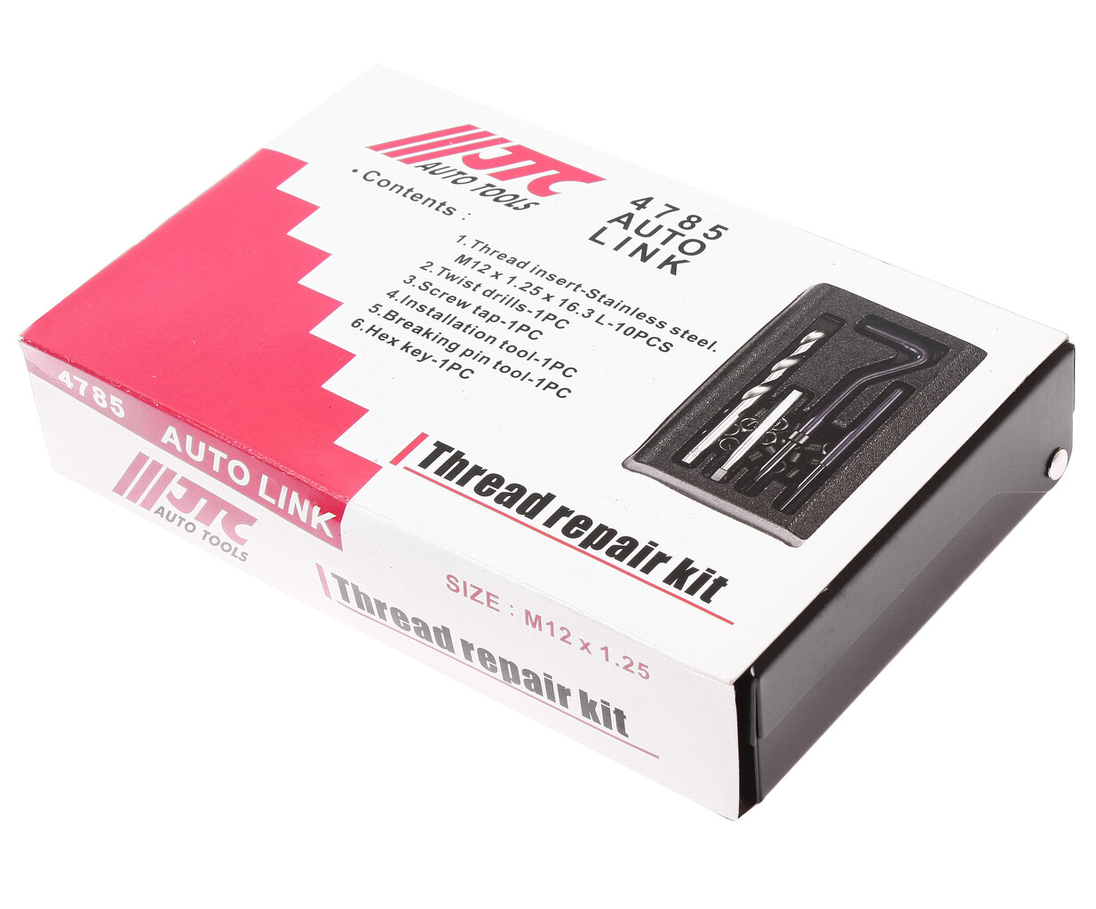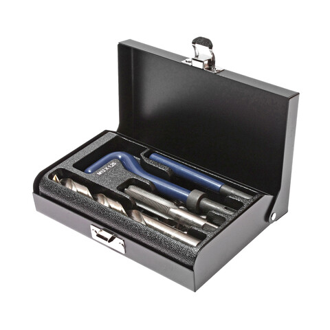 В комплект входят: сверло, метчик, установочный инструмент, инструмент для обламывания хвостовика, резьбовые вставки