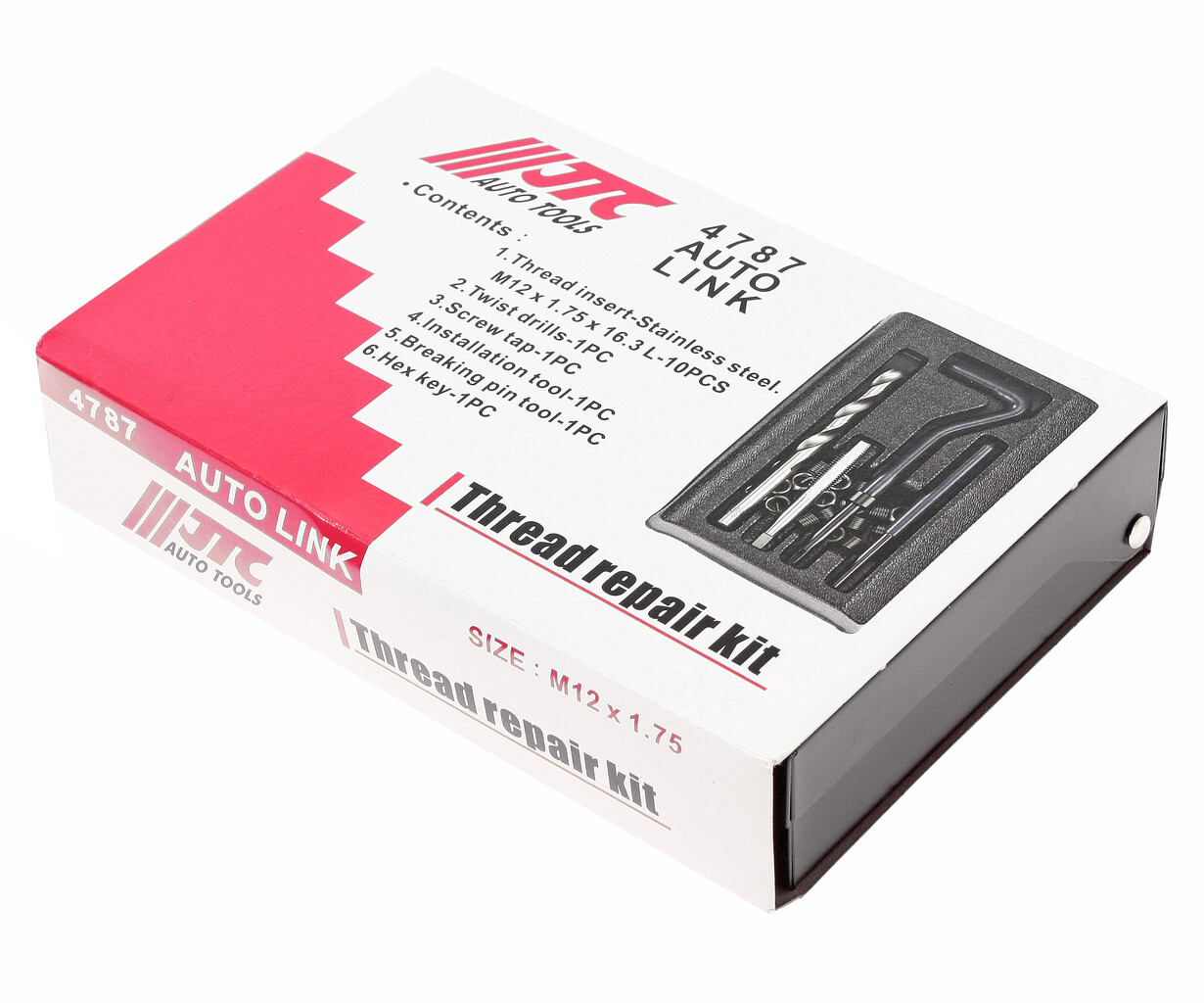 Набор инструментов и вставок для восстановления резьбы М12х1.75мм L=16.3мм 14 предметов JTC