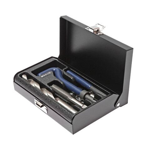 • В комплекте 14 предметов. В комплект входят: сверло, метчик, установочный инструмент, инструмент для обламывания хвостовика, резьбовые вставки. Размеры: М12х1.75. Длина: 16.3 мм. Количество резьбовых вставок: 10 шт. Упаковка: прочный пластиковый кейс. Габаритные размеры: 165/110/35 мм. (Д/Ш/В) Вес: 688 гр.