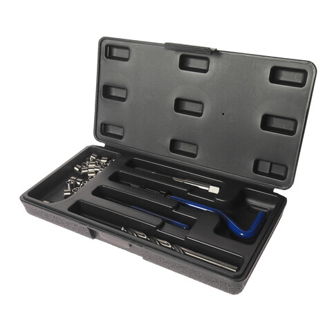 • В комплекте 24 предмета В комплект входят: сверло, метчик, установочный инструмент, инструмент для обламывания хвостовика, резьбовые вставки Размеры: М8х1.25 Длина: 10.8 мм. Количество резьбовых вставок: 20 шт. Упаковка: прочный пластиковый кейс. Габаритные размеры: 250/130/45 мм. (Д/Ш/В) Вес: 394 гр.