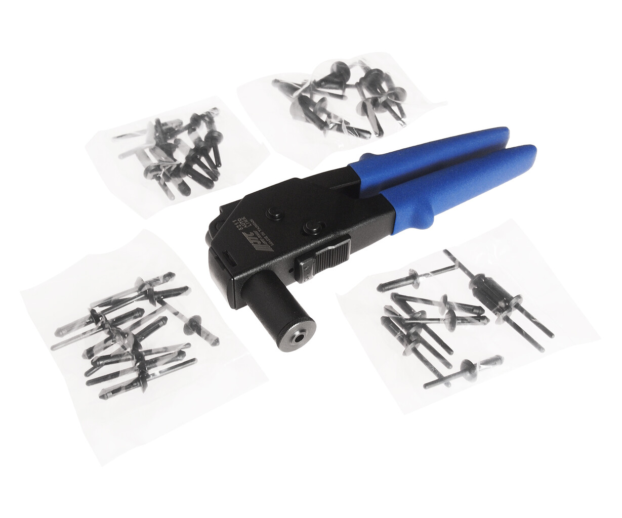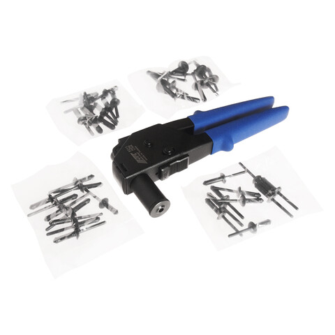 • В комплекте: Заклепочник – 1 шт. Заклепки ø5х15.8 мм. – 10 шт. Заклепки ø5х17.2 мм. – 10 шт. Заклепки ø6.3х25.2 мм. – 10 шт. Заклепки ø6.6х17.2 мм. – 10 шт. Материал заклепок: нейлон 66. Габаритные размеры: 350/200/40 мм. (Д/Ш/В) Вес: 750 гр.