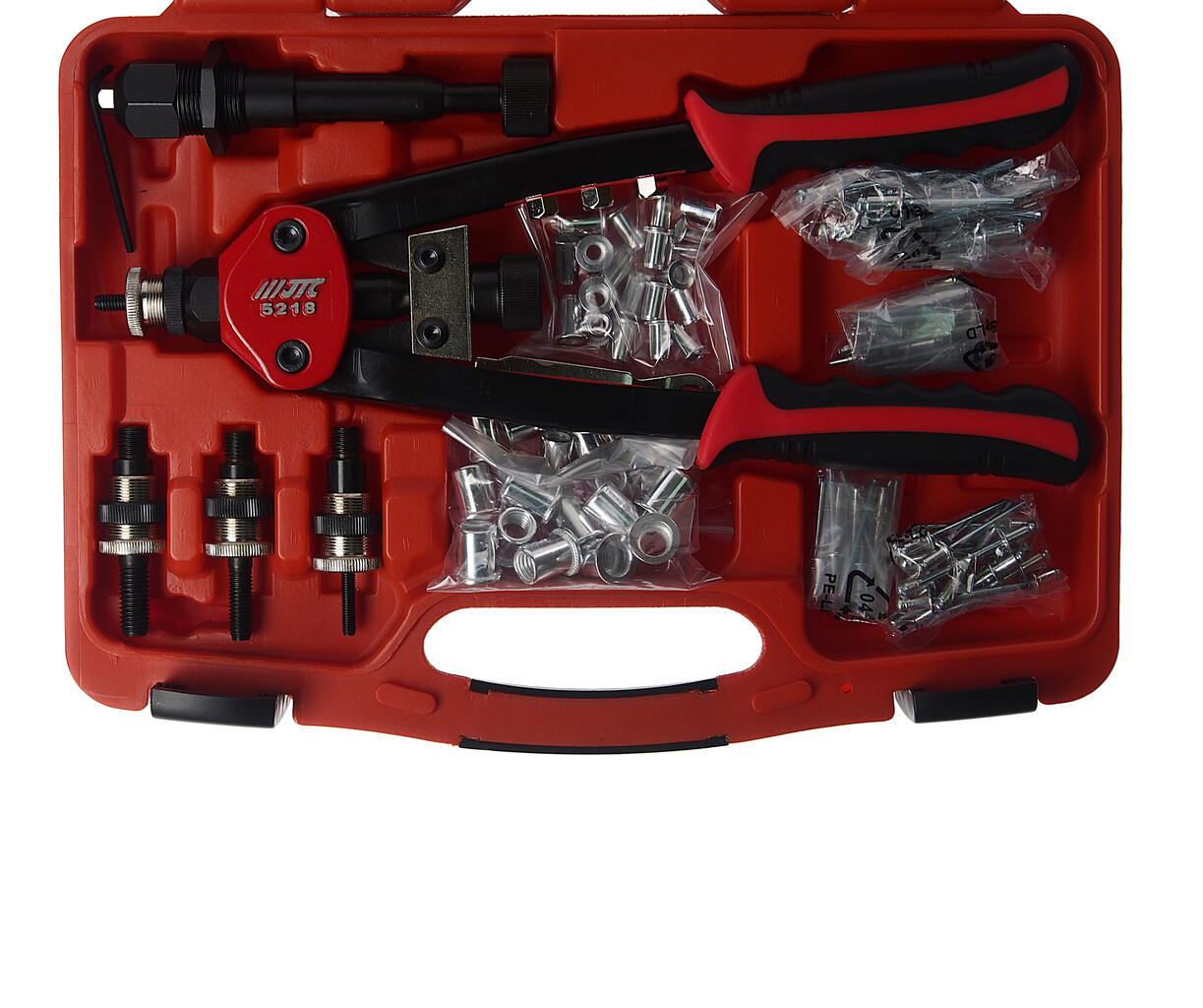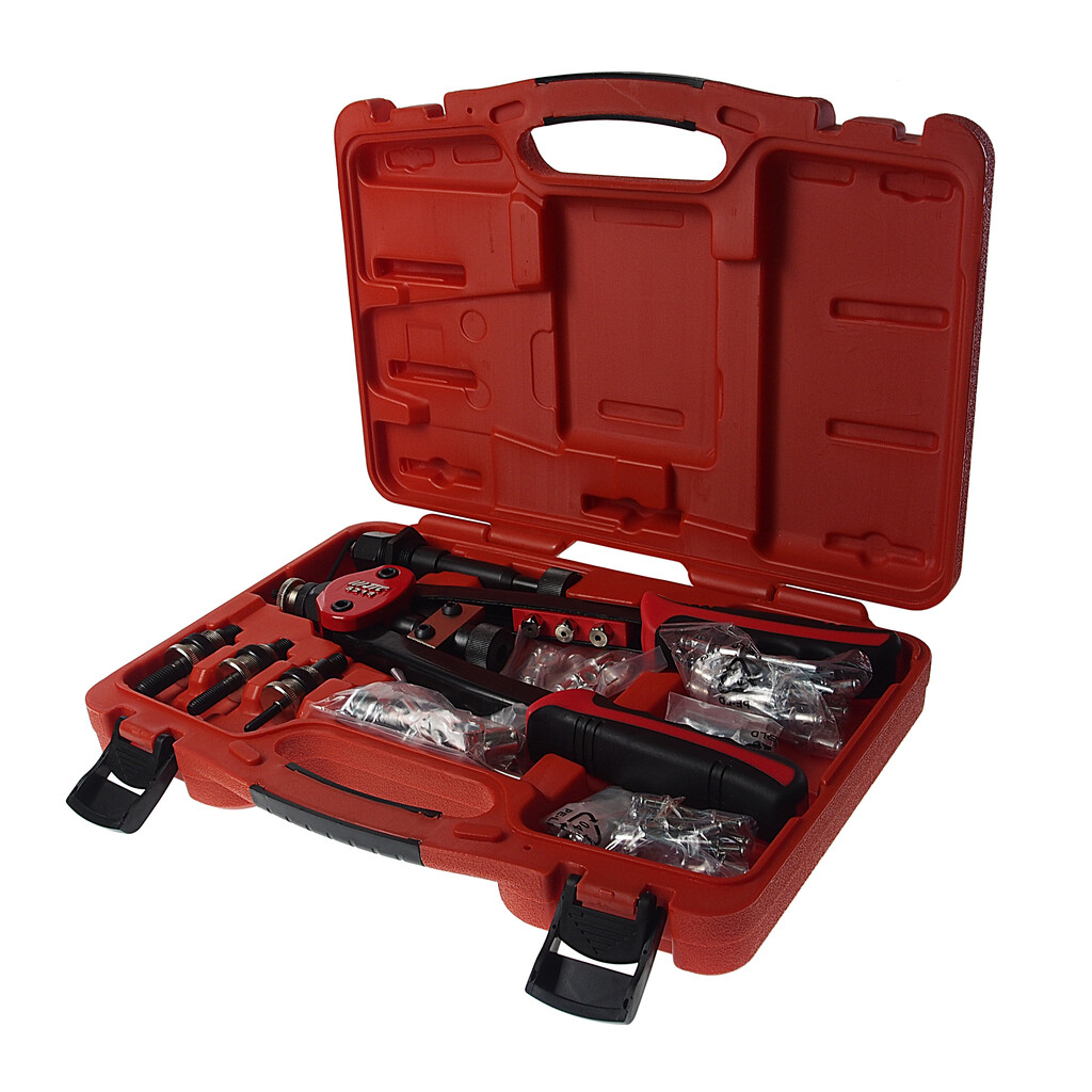 В комплекте: заклепки: 20 шт/каждого размера (1/8", 5/32", 3/16", 1/4"). гайки: 10 шт/каждого размера (5, 6, 8, 10 мм).