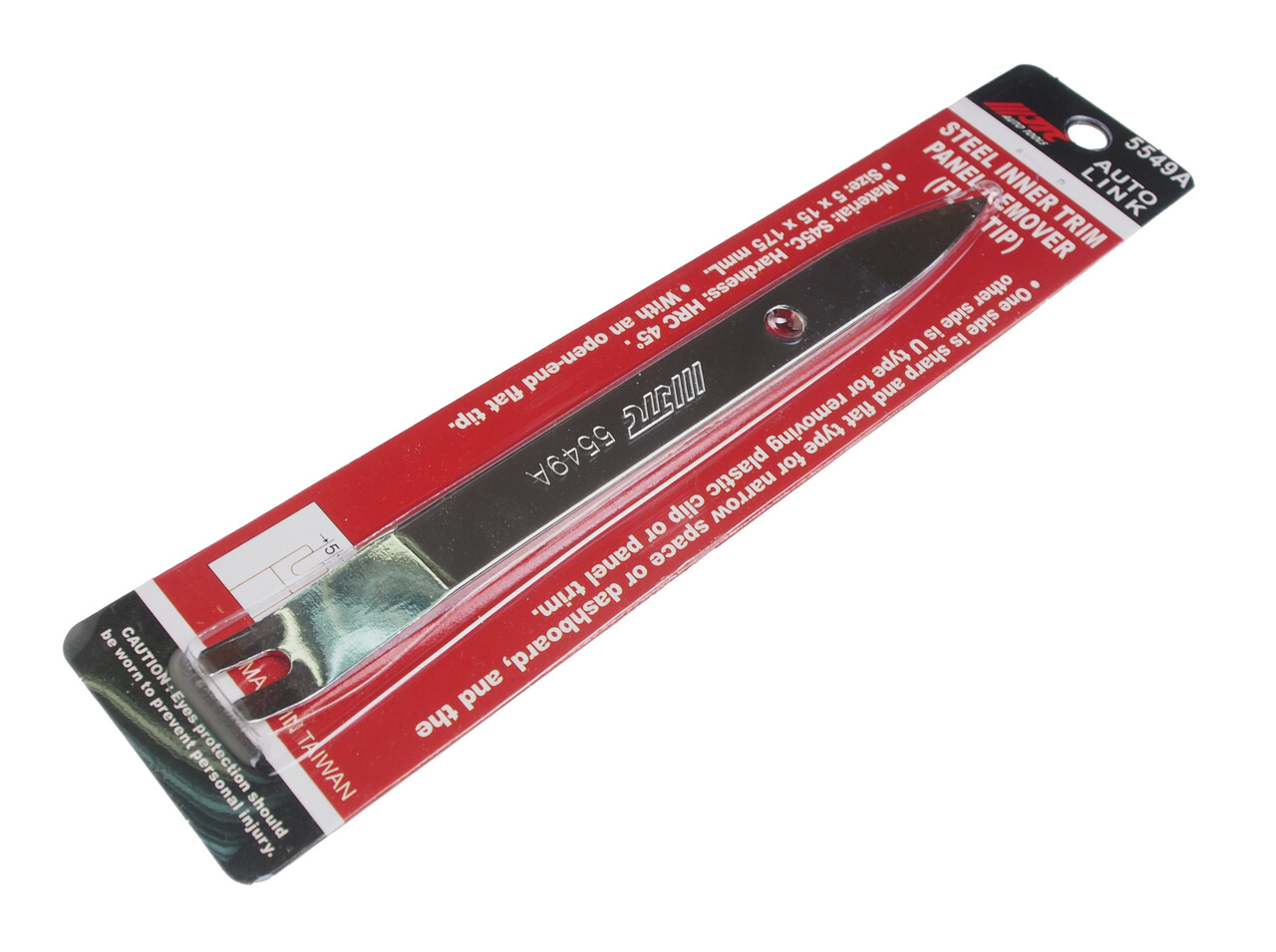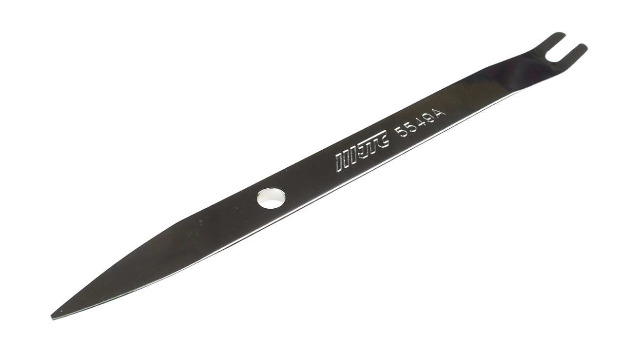 • Одна сторона заостренная и плоская для узких мест или приборной панели, а другая П-образная для удаления пластиковых зажимов или отделки. Материал: S45C. Твердость: HRC 45°. Размер: 5 x 15 x 175 мм Открытый плоский наконечник.
