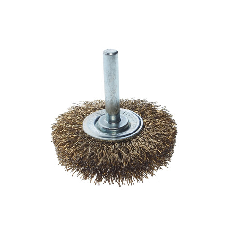 • Материал: cтальная проволока с латунным покрытием. Диаметр хвостовика: 6 мм. Диаметр щетки: 2". Толщина щетки: 10 мм.