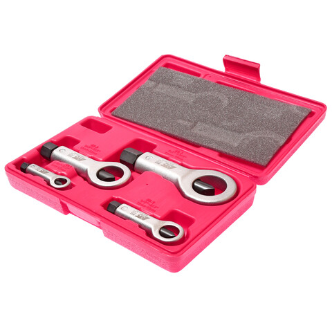 • Комплектация Гайкорубы – 4 шт. 56121 – 15/16" - 1/2" (9-12 мм) 56122 – 1/2" - 5/8" (12-16 мм) 56123 – 5/8" - 7/8" (16-22 мм) 56124 – 7/2" - 1-1/8" (22-27 мм) Описание Применяется для легкого и быстрого удаления заржавевших и деформированных гаек. Материал: хром-ванадиевая сталь. Нельзя использовать c гайками из закаленных материалов и нержавеющей стали.